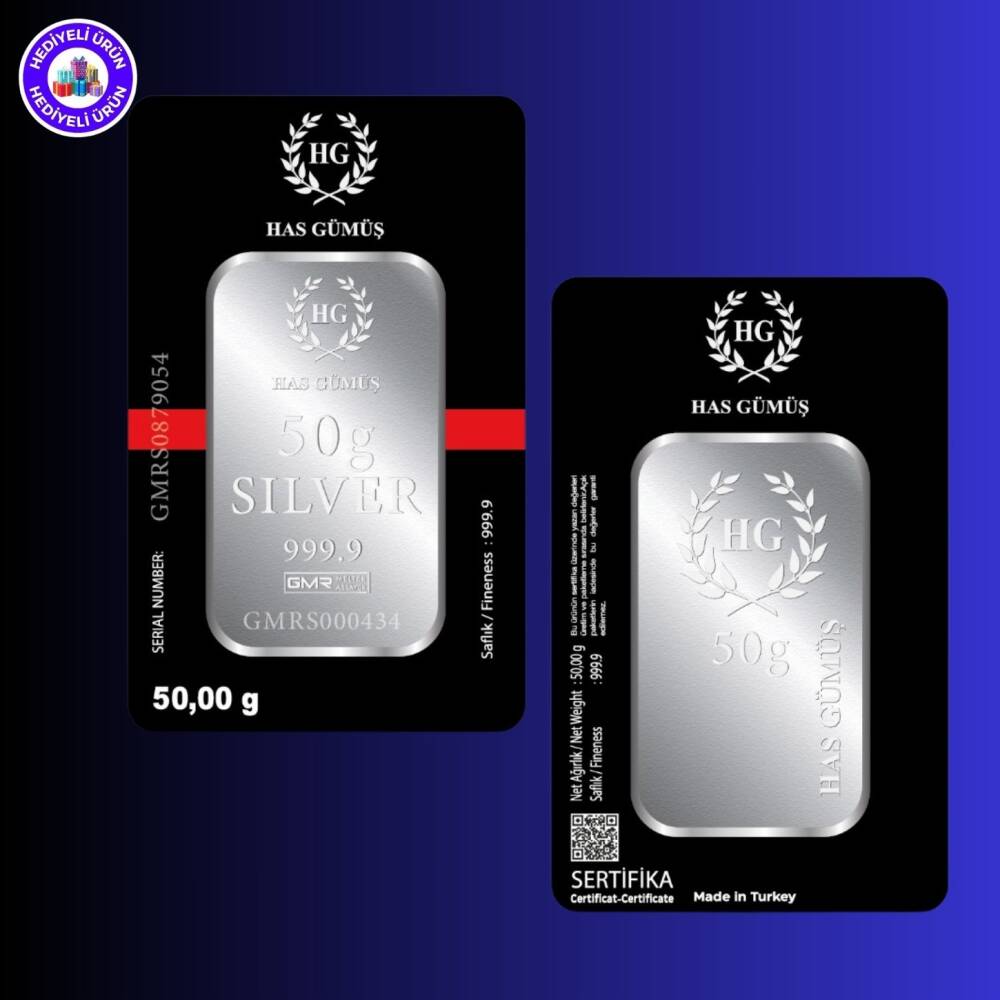 Marka :Has Metal Rafineri Saflık : 999,9 Gram : 50gr. Satın aldığınız ürünler özel anlaşmalı ve sigortalı gönderi şirketi ile güvenle gönderilmektedir. Siparişiniz, siz teslim alana kadar e-gümüş.com.tr güvencesi altındadır. Gram Külçe Gümüş Siparişlerinde; Kredi kartı bilgileri ile üye bilgileri eşleşmediğinde, kredi kartı sahibinin kimlik ve kredi kartı görüntüsünü iletmesi gerekmektedir. Aksi takdirde sipariş iptal edilip para iadesi yapılacaktır. Hafta içi saat 16:00’a kadar verilen siparişler, aynı gün sigortalı gönderi şirketine teslim edilir. Resmi tatil, cumartesi ve pazar günlerinde verilen siparişler ilk iş günü işleme alınmaktadır. Teslimat süreleri bulunduğunuz il ve ilçeye göre 2 veya 3 iş günü olarak değişiklik gösterebilir. Ürünlerimiz tüm Türkiye'de sarraf, kuyumcu ve döviz bürolarından istediğiniz an nakit paraya çevirebilirsiniz. Üretim sırasında maden kalıplara yüksek ısı derecesi ile dökülmektedir. Bu yüksek ısıda kalıplara dökülüp çıkarılma esnasında ön ve arka yüzünde hare görünümlü pütürler, siyah lekeler veya hafif çizikler olması gayet doğaldır. Oluşan izler üretim kaynaklı olup kusur olarak sayılmamaktadır. Satış ve saklama esnasında herhangi bir zarar kaybı teşkil etmemektedir. Altın ve gümüş fiyatları dünya altın borsasındaki değişikliklere göre güncellenmektedir. Bu nedenle altın ve gümüş siparişleri kesin sipariştir, herhangi bir nedenden dolayı iptal veya iade edilemez. Ürün ile ilgili üretim kusuru olması durumunda yenisi ile değiştirilecektir. Sipariş veren kişi bu şartları kabul etmiş sayılır.